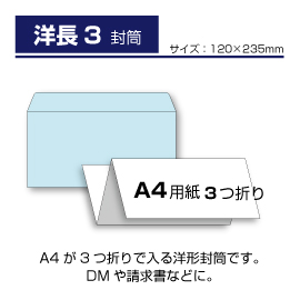 A4が3つ折りで入る洋型封筒です。DMや請求書などに。